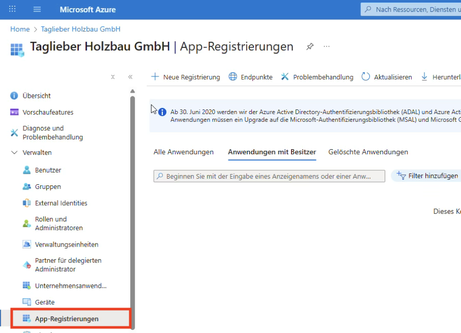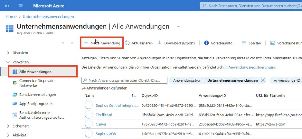 Dort wechseln wir in den Bereich „Verwalten“ -> „Unternehmensanwendungen“.