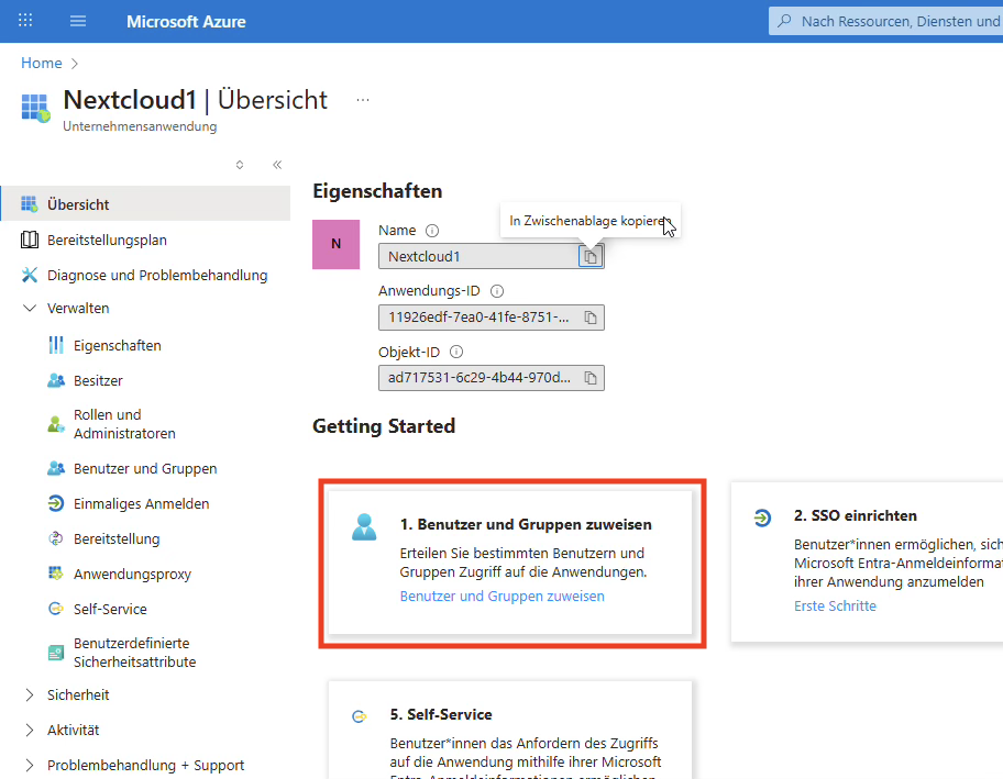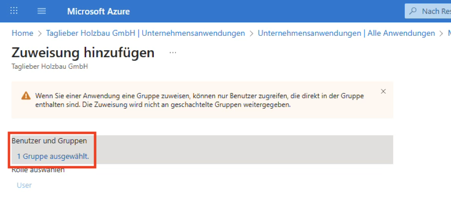 Zum Zuweisen der Benutzer/Gruppe auf „Benutzer und Gruppen zuweisen“ klicken – und diese hinterlegen.