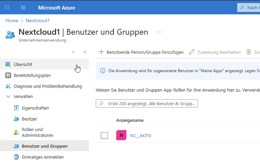 In meinem Fall sollen alle Benutzer der Gruppe „NC_Aktiv“ Zugriff auf die Nextcloud bekommen.