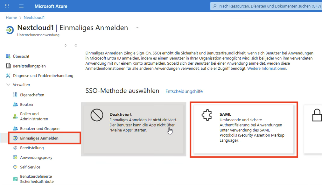 Hinweis: Auf der Nextcloud muss die App „SSO & SAML authentication“ installiert sein.