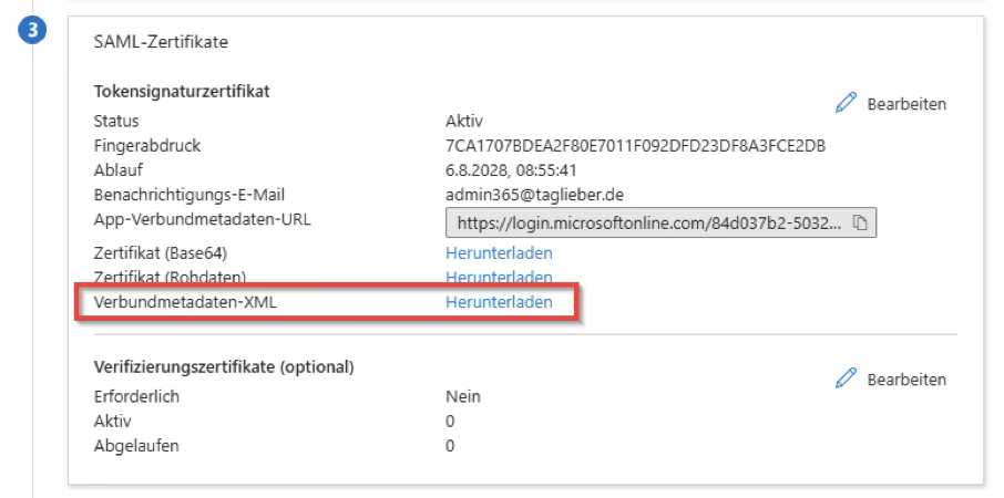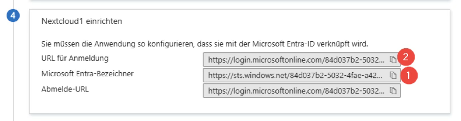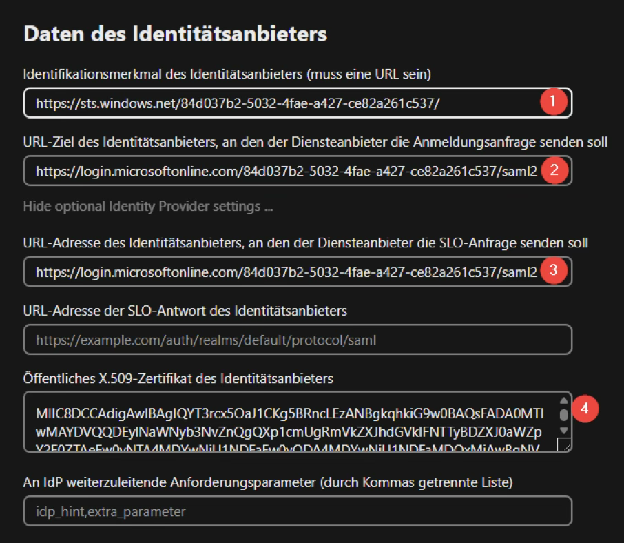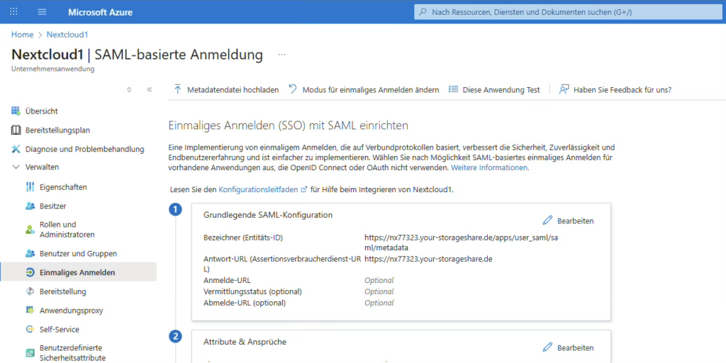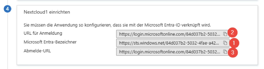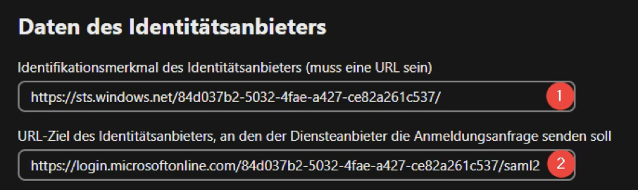 Identifiert / Bezeichner: https:// deinedomain.de/apps/user_saml/saml/metadata