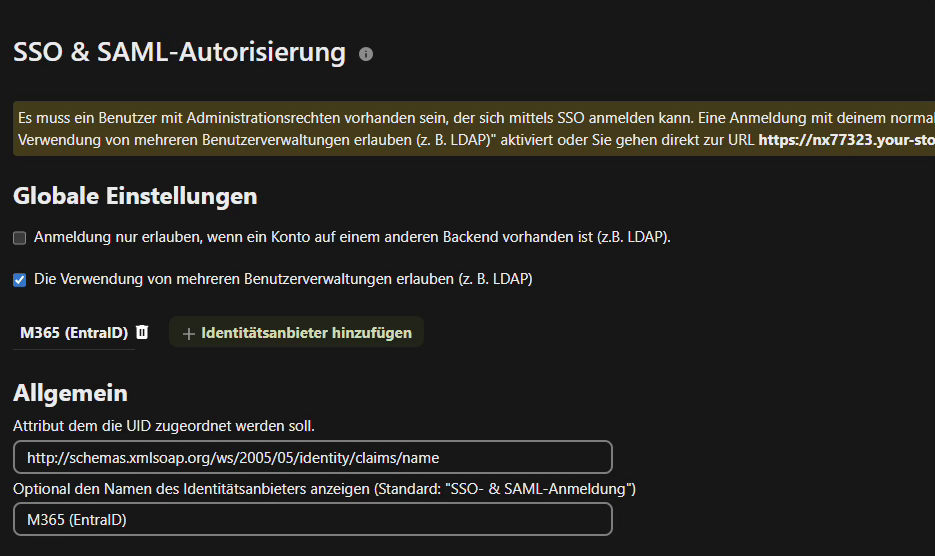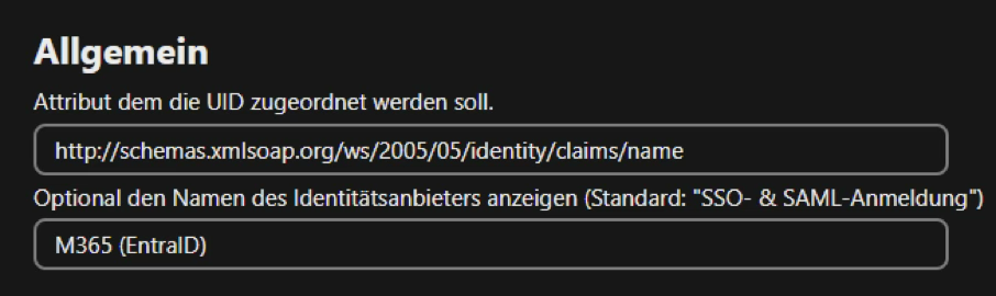 Bezeichnung kann frei gewählt werden -> das wird auf dem Login angezeigt, z.B.: „M365 (EntraID)“.