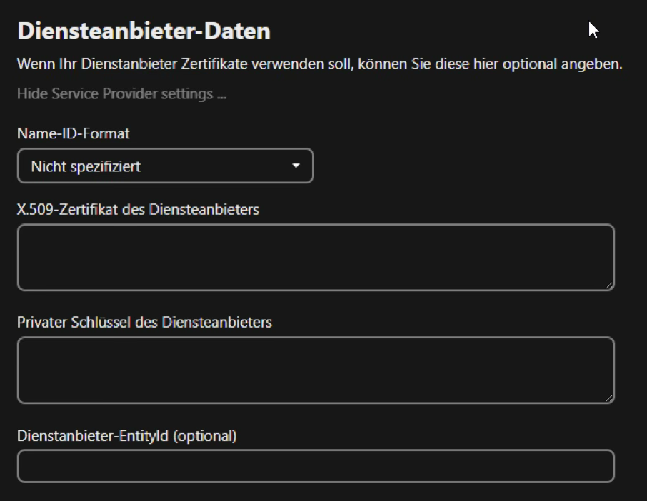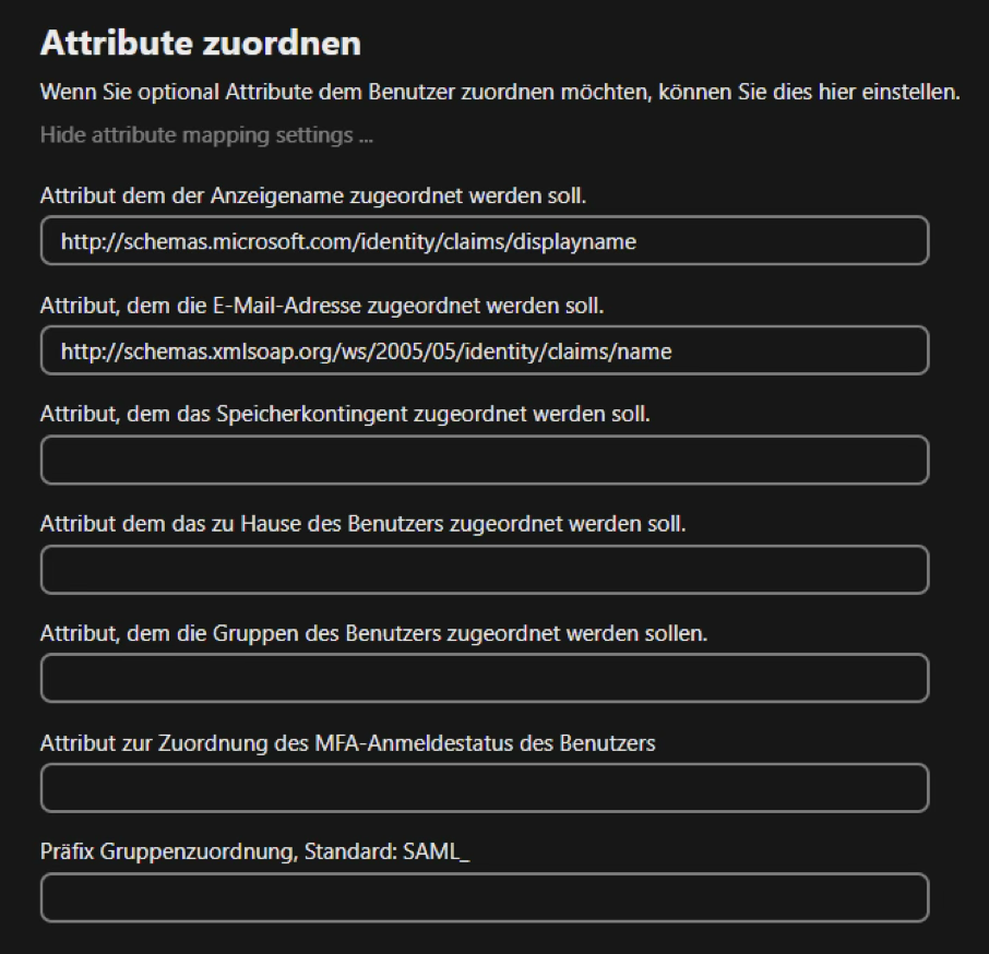 Nun auf der Nextcloud die SAML-Einstellungen setzen.
