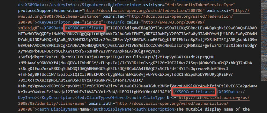 X509Certifikate suchen und den Wert im Tag in die Nextcloud kopieren.